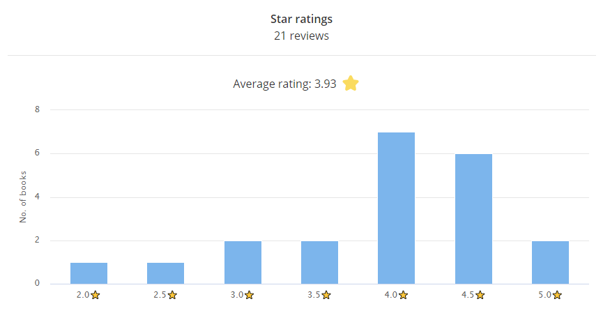 My average rating for May went up from last month. You’ll notice it’s not quite 4.0 stars. Blame Plain Bad Heroines for that.